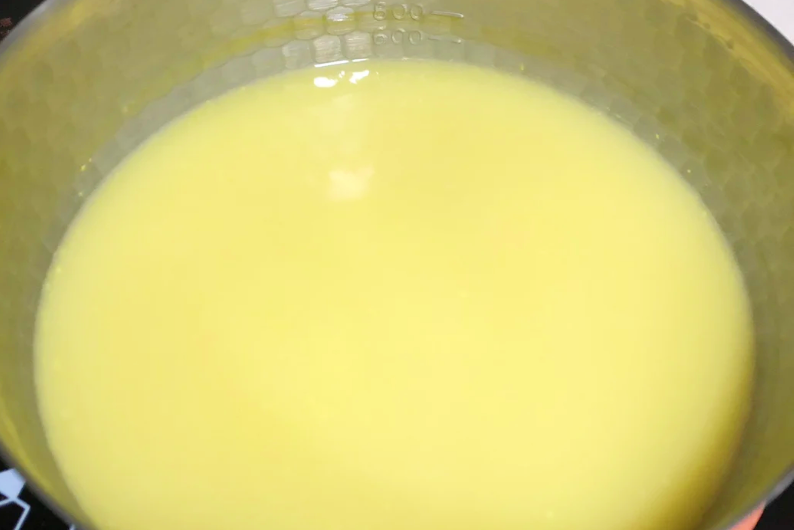 4、經過過濾後的薑汁,就屬於純粹的汁水了,大火將薑汁煮開,放涼後分裝入容器中,再放入冰箱冷藏保存即可,吃之前可以適量加熱一下;